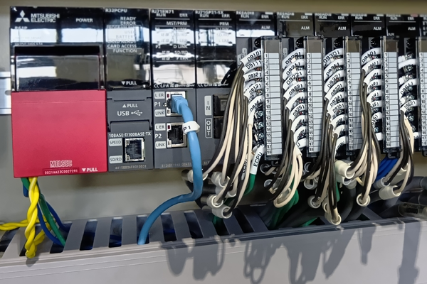 各種配電盤・制御盤製作における電気回路設計から筐体設計、筐体ならびに電気部品調達、それらの取付・配線、耐圧試験を含めた電気検査、さらにはPLCソフトウェア構築と統合試験を行っています。