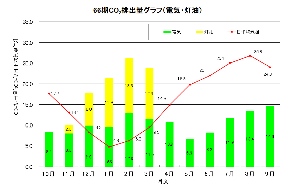66期(2015年10月~2016年9月)のCO2排出量(電気・灯油)