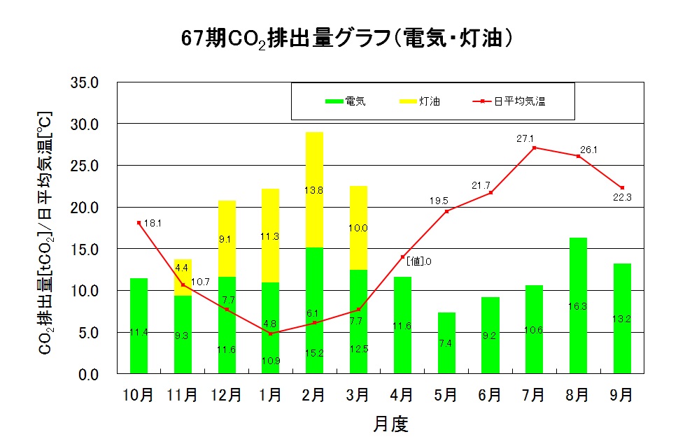 67期(2016年10月~2017年9月)のCO2排出量(電気・灯油)