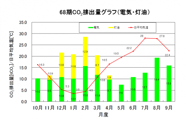 68期(2017年10月~2018年9月)のCO2排出量(電気・灯油)