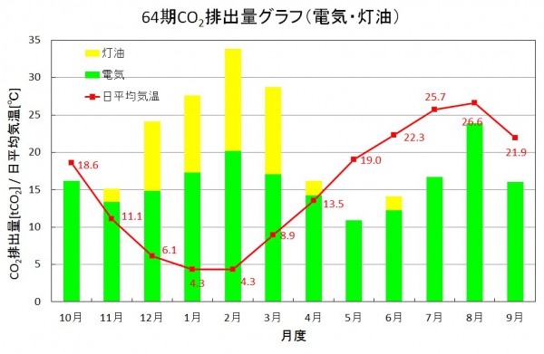 64期(2013年10月~2014年9月)のCO2排出量(電気・灯油)