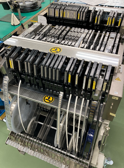 外段取りによりマウンタの停止・ロスを最小限におさえ、多品種・少量生産に対応します。