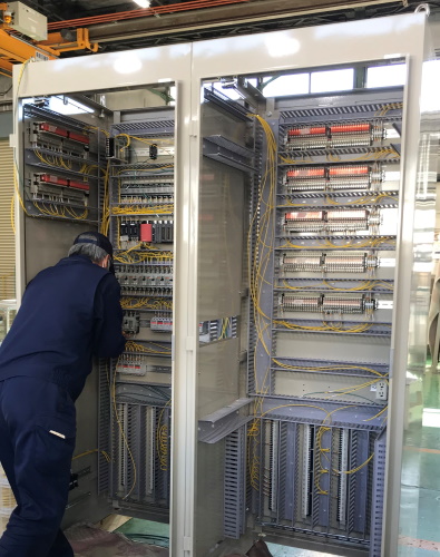 こちらの工場では盤関係の資材調達から、組立、配線、検査、出荷までを行っております。
